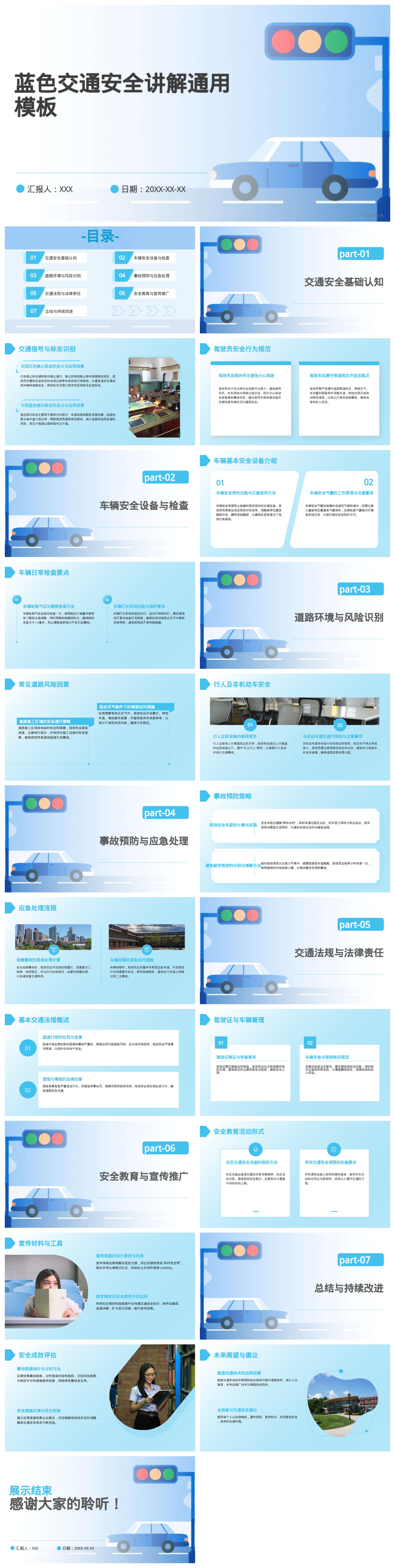 蓝色交通安全讲解通用模板