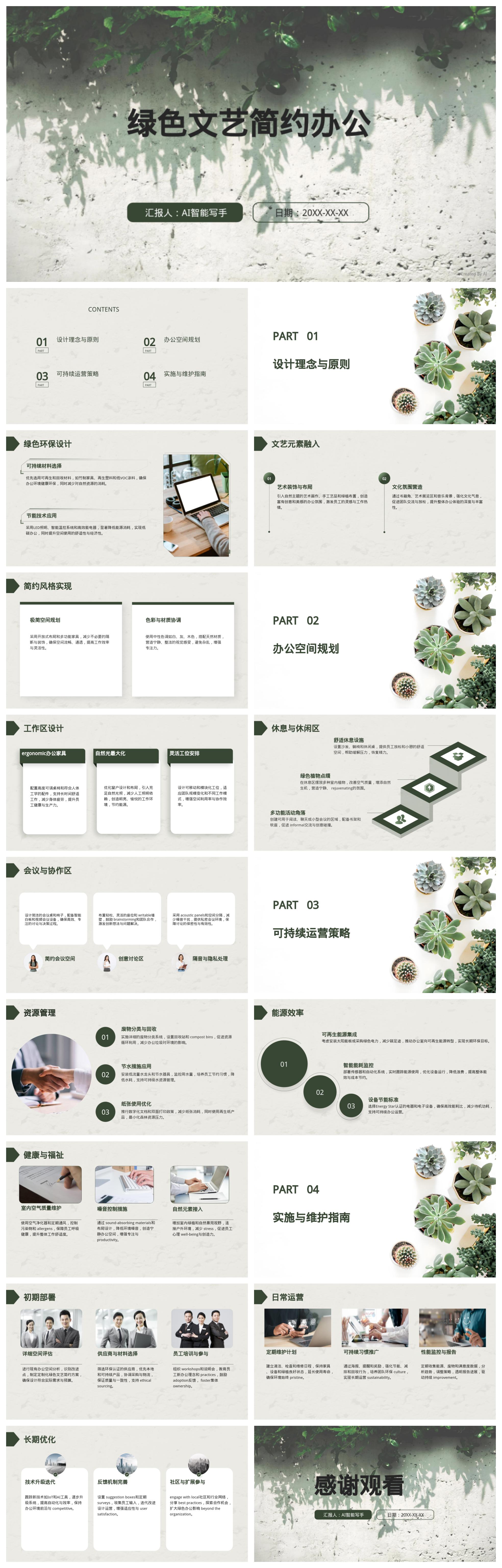 绿色文艺简约办公