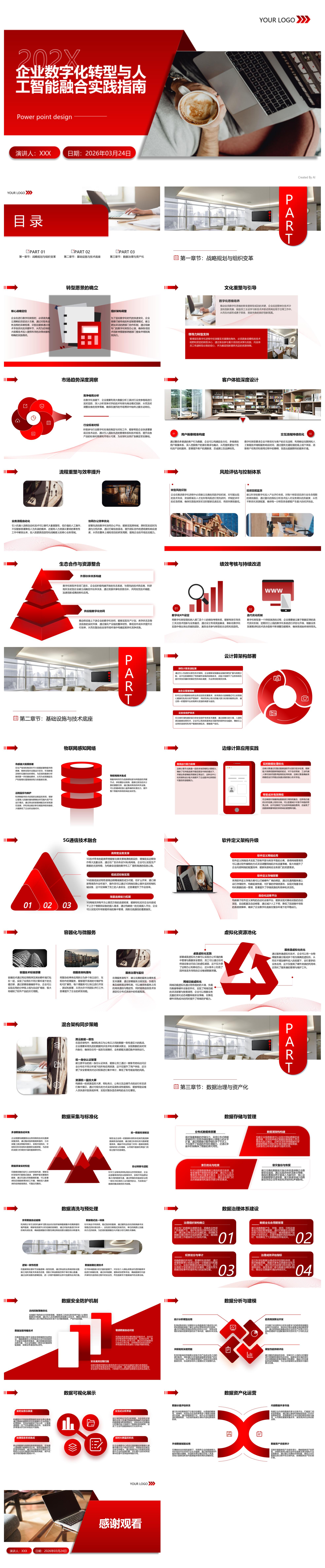 红色简约汇报模板