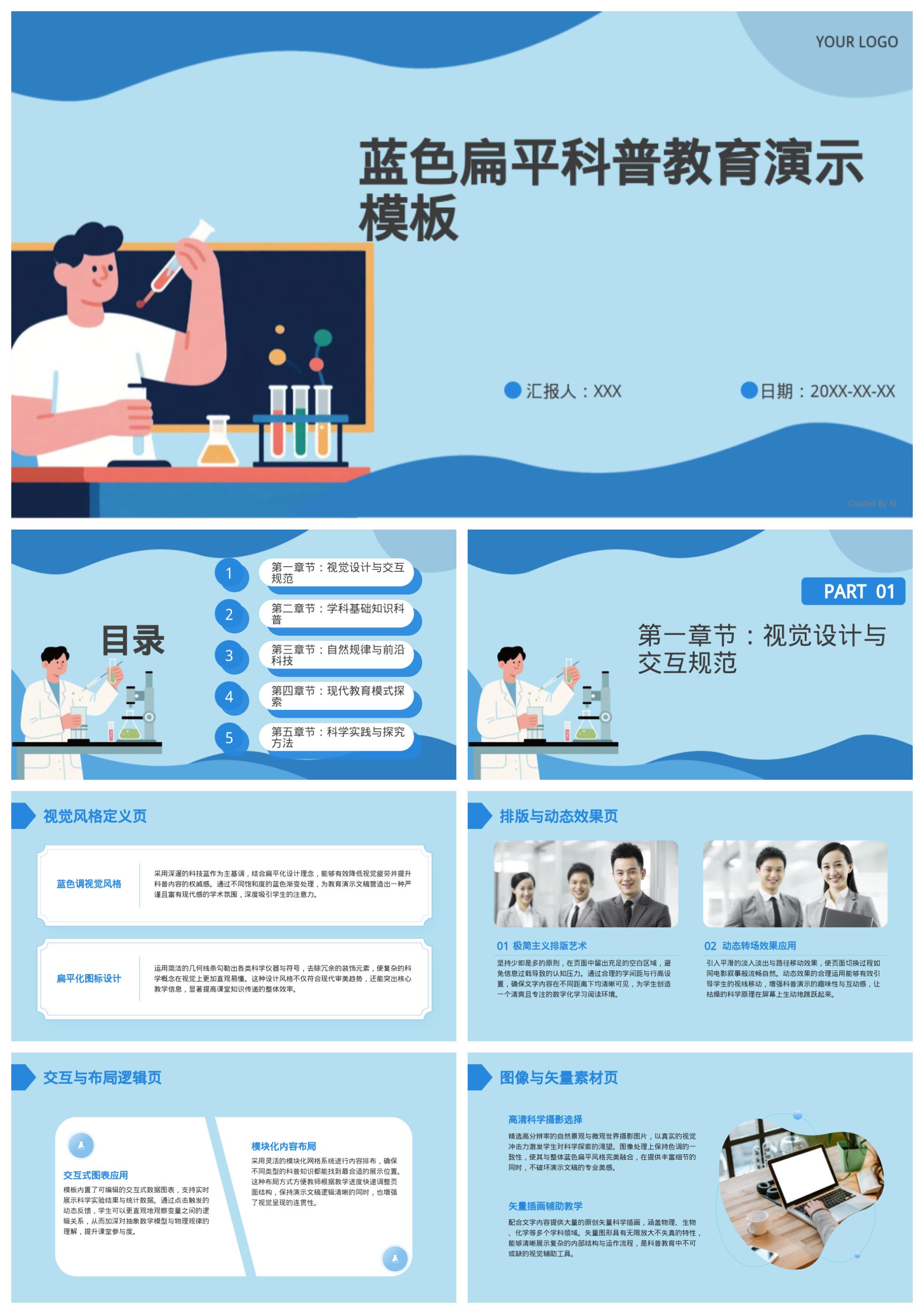 蓝色扁平科普教育演示模板