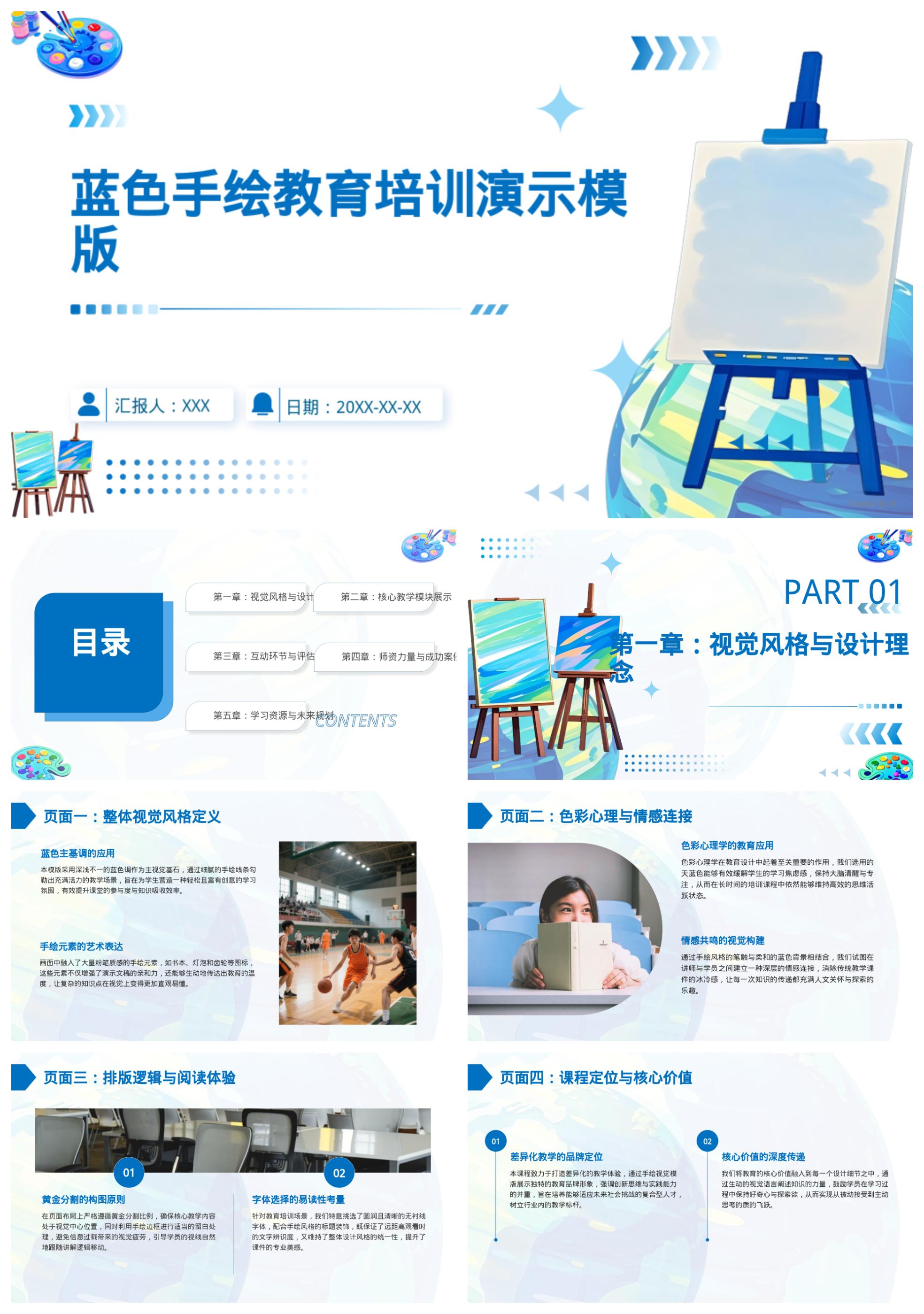 蓝色手绘教育培训演示模版