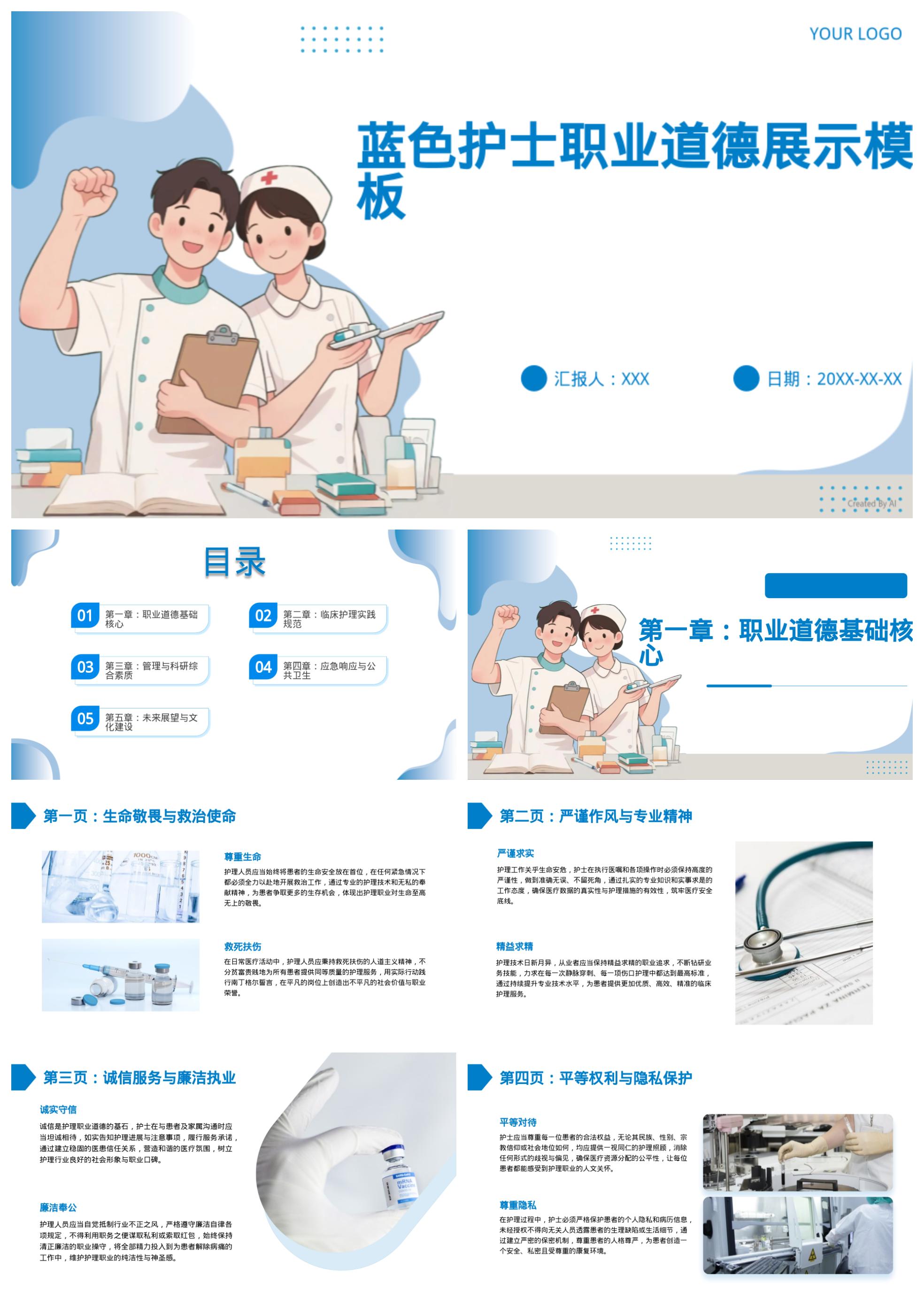 蓝色护士职业道德展示模板