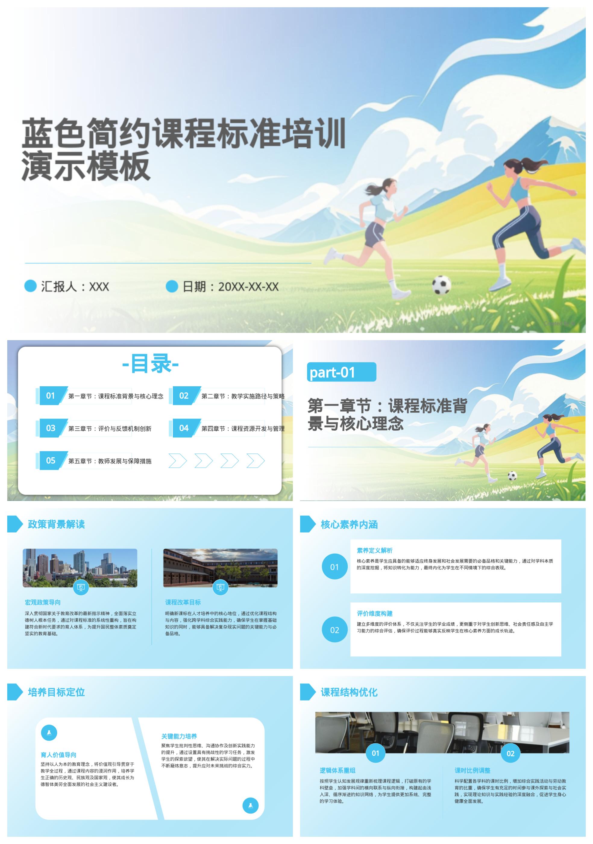 蓝色简约课程标准培训演示模板
