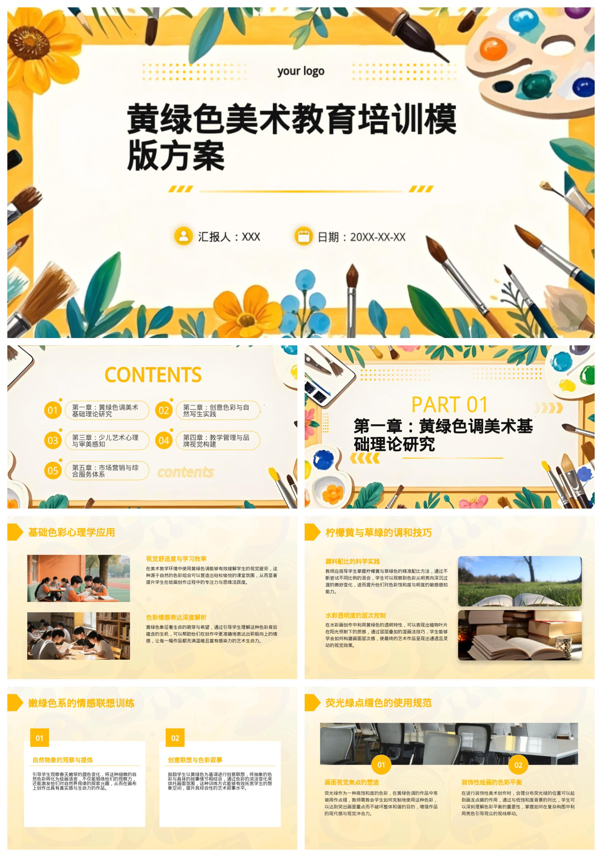 黄绿色美术教育培训模版