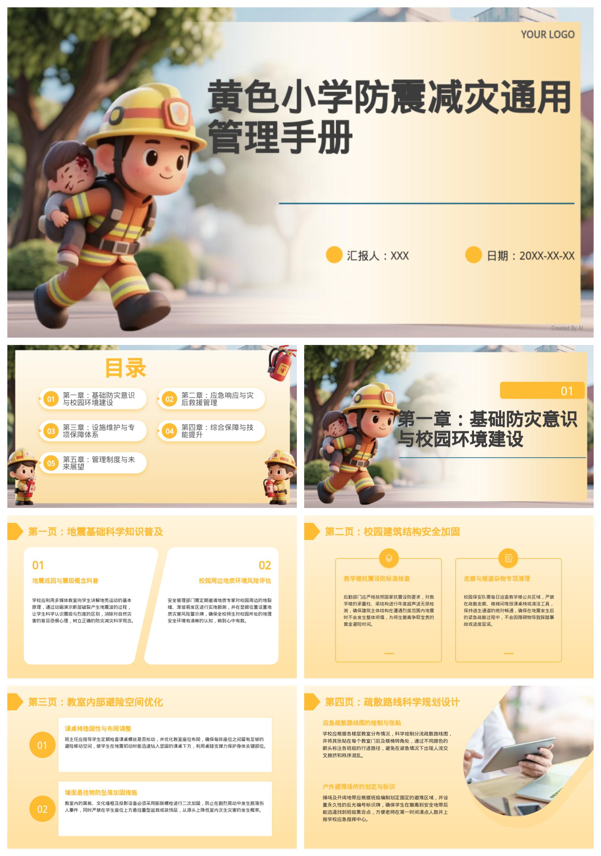黄色小学防震减灾通用模板