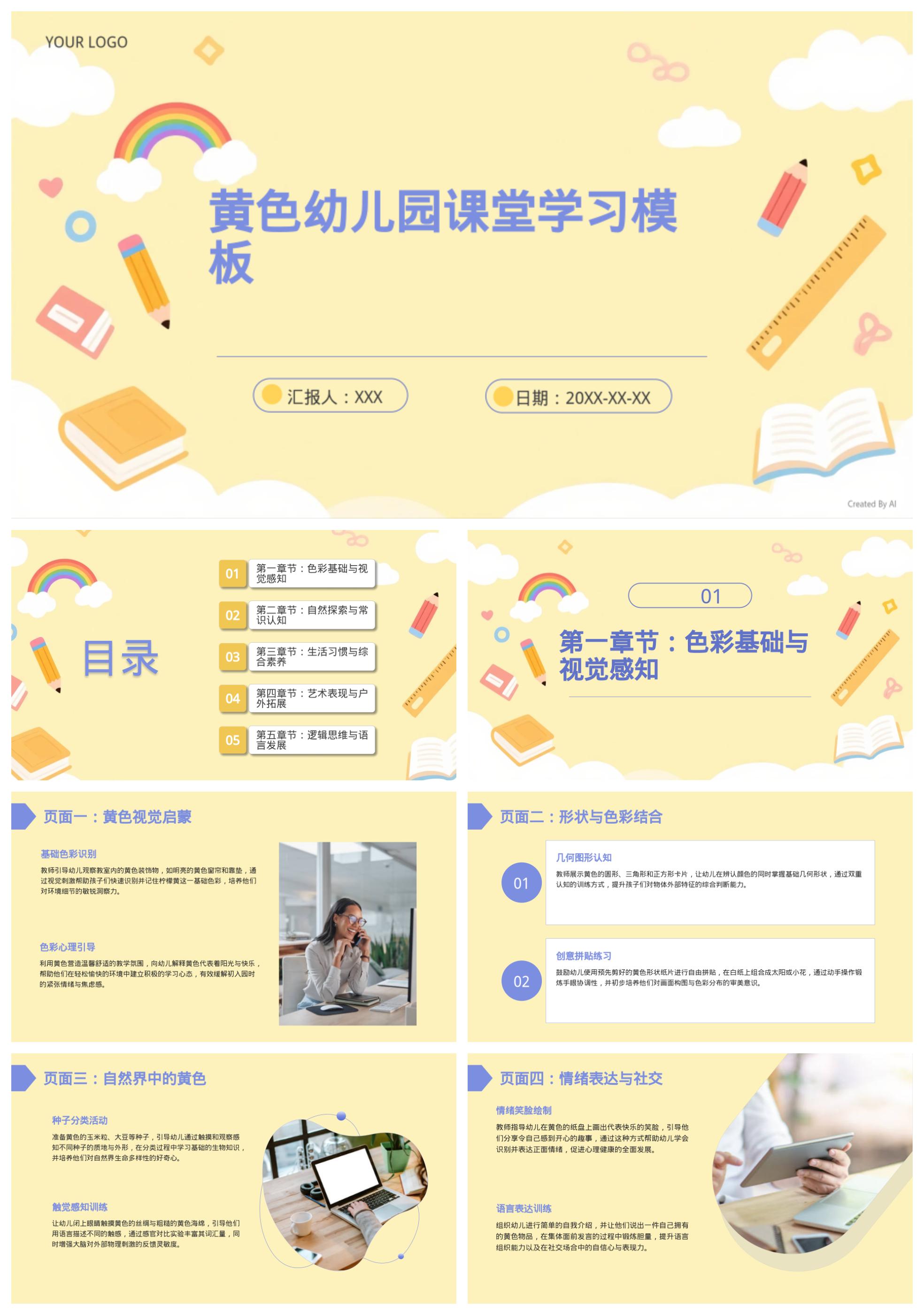 黄色幼儿园课堂学习模板