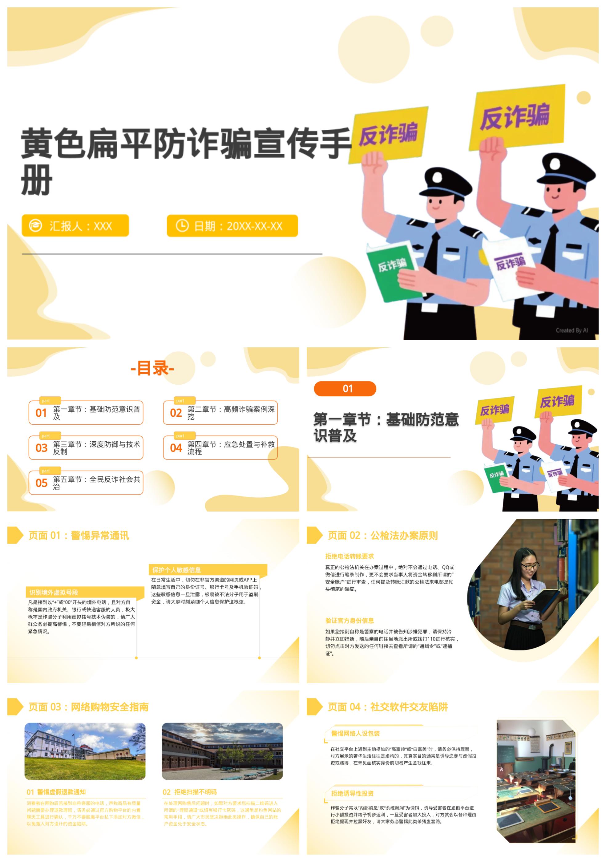 黄色扁平防诈骗宣传模板