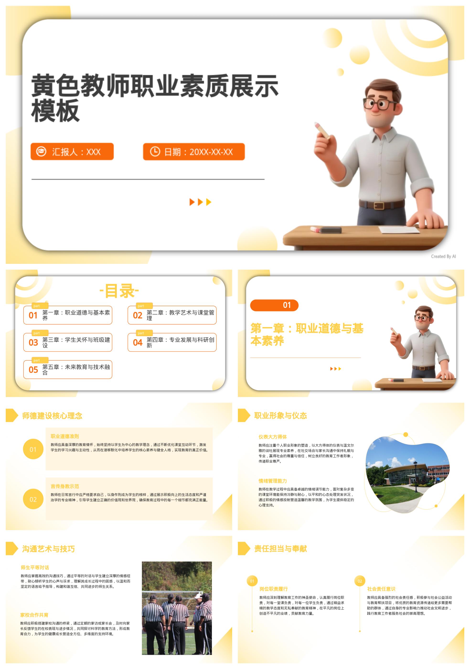 黄色教师职业素质展示模板