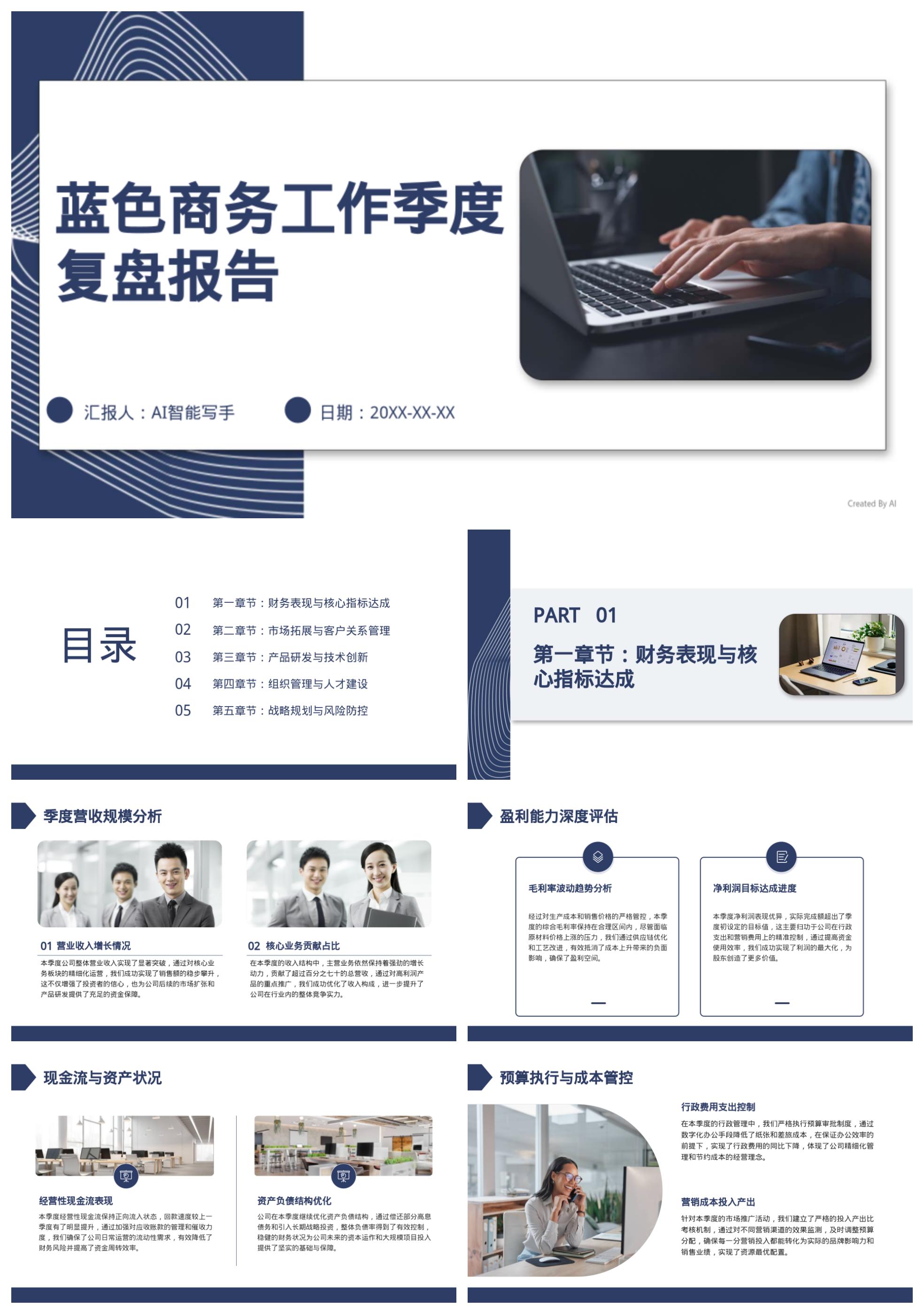 蓝色商务工作季度复盘报告