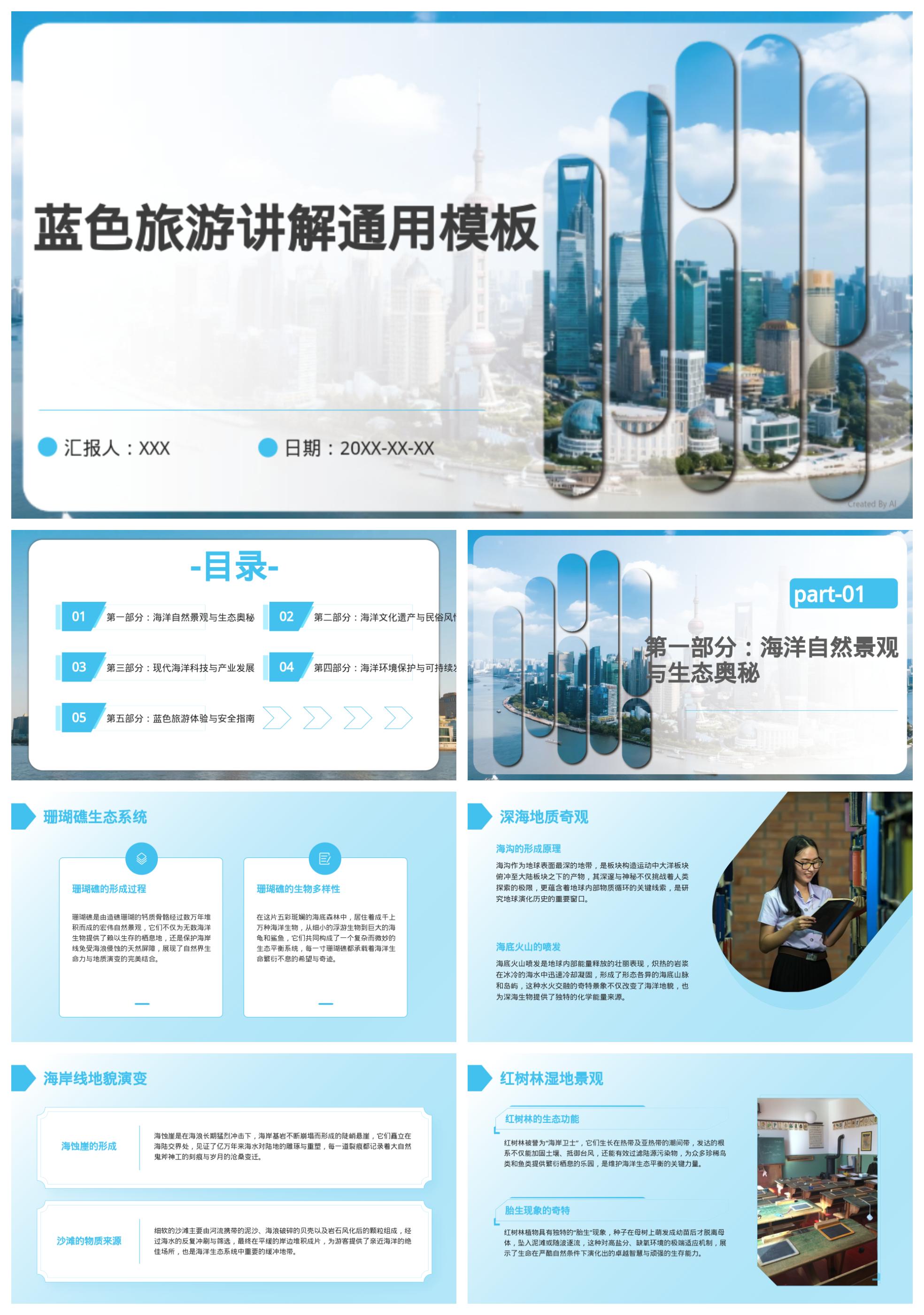 蓝色旅游讲解通用模板