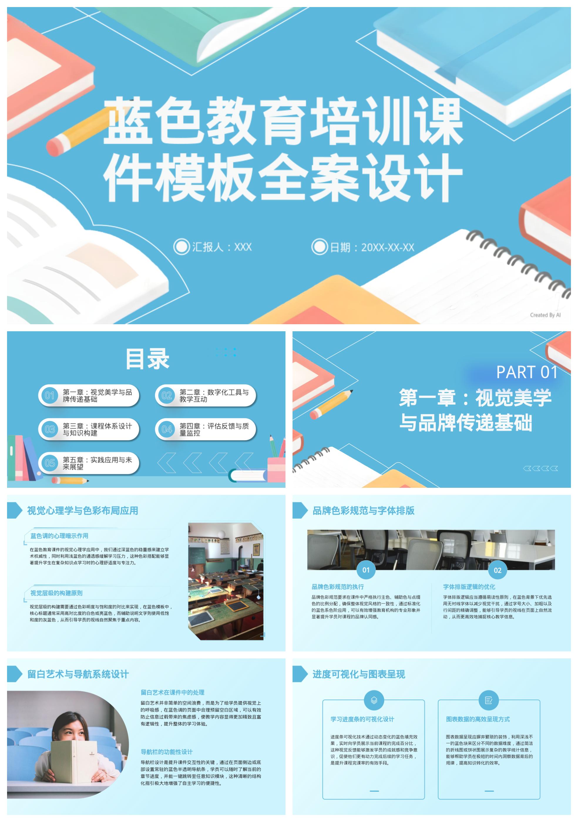 蓝色教育培训课件模版
