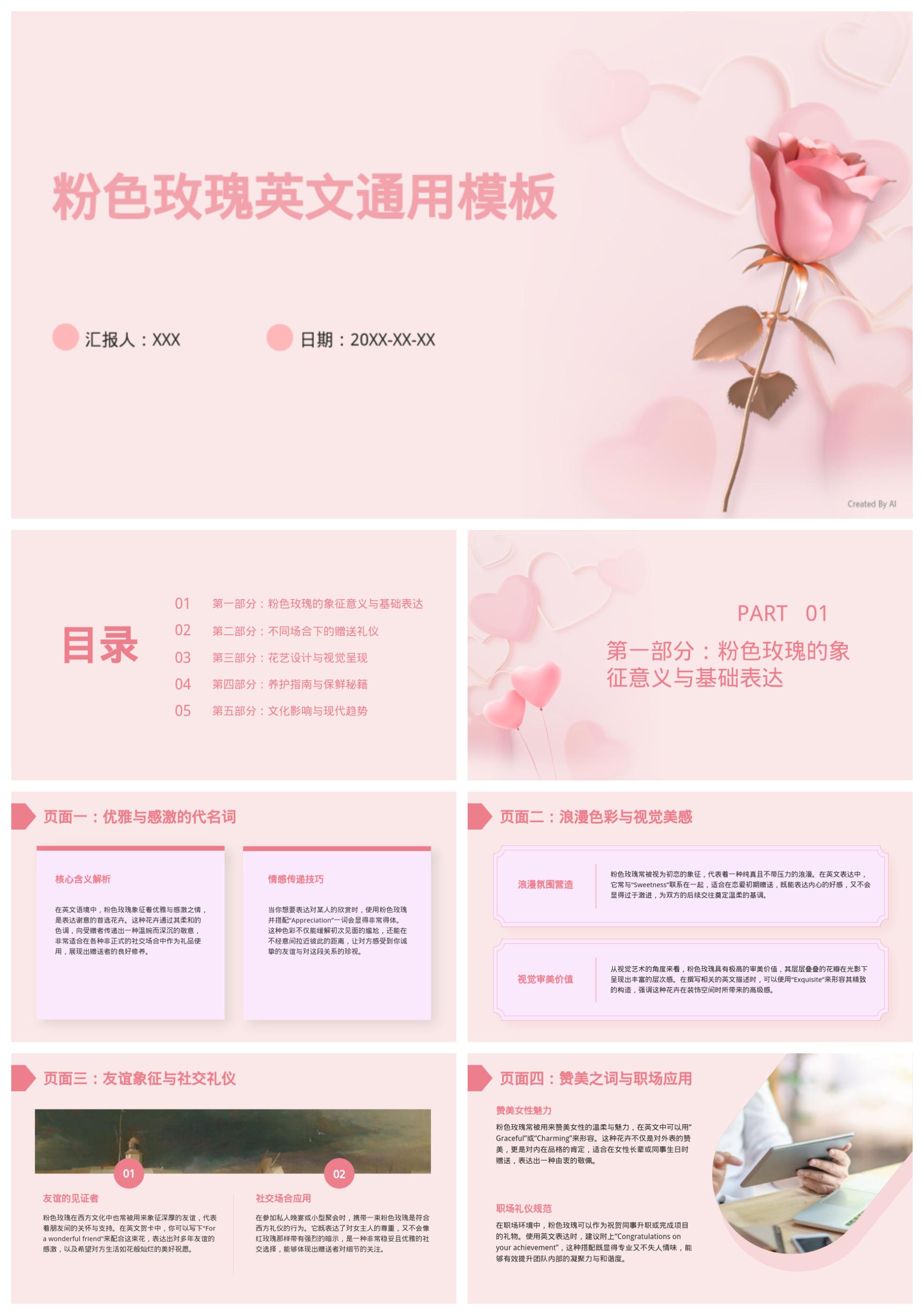 粉色玫瑰英文通用模板