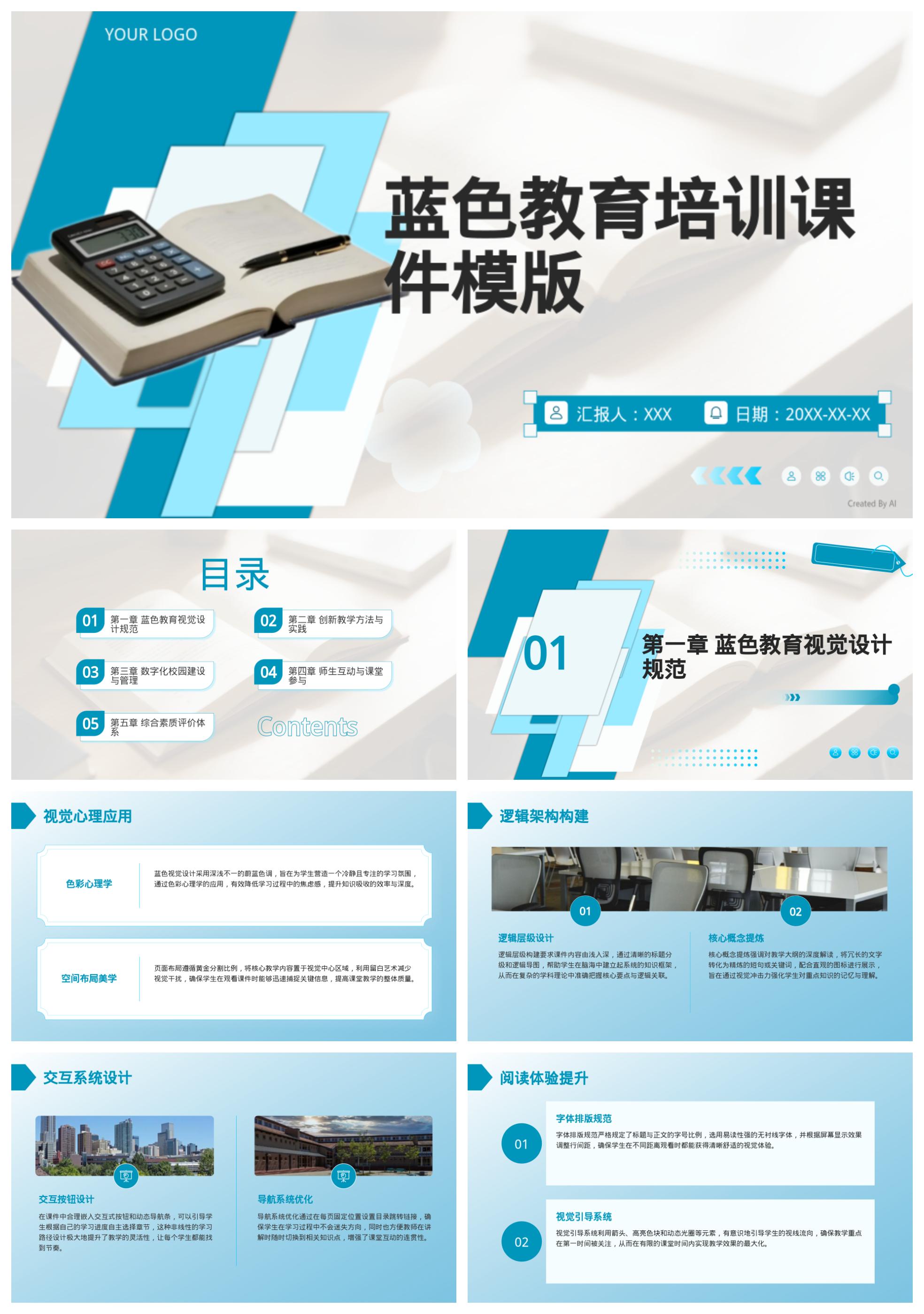 蓝色教育培训课件模版