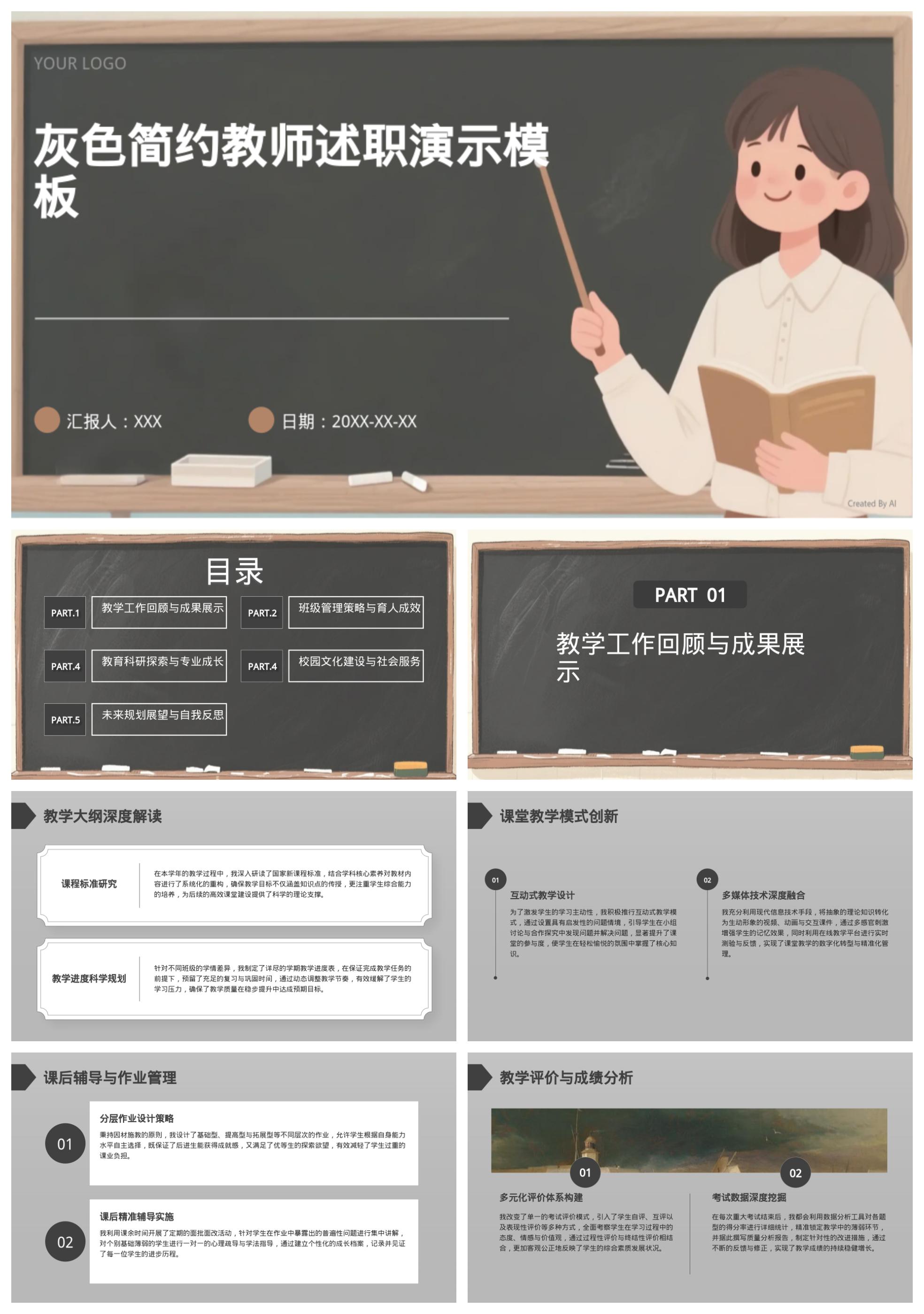 灰色简约教师述职演示模板