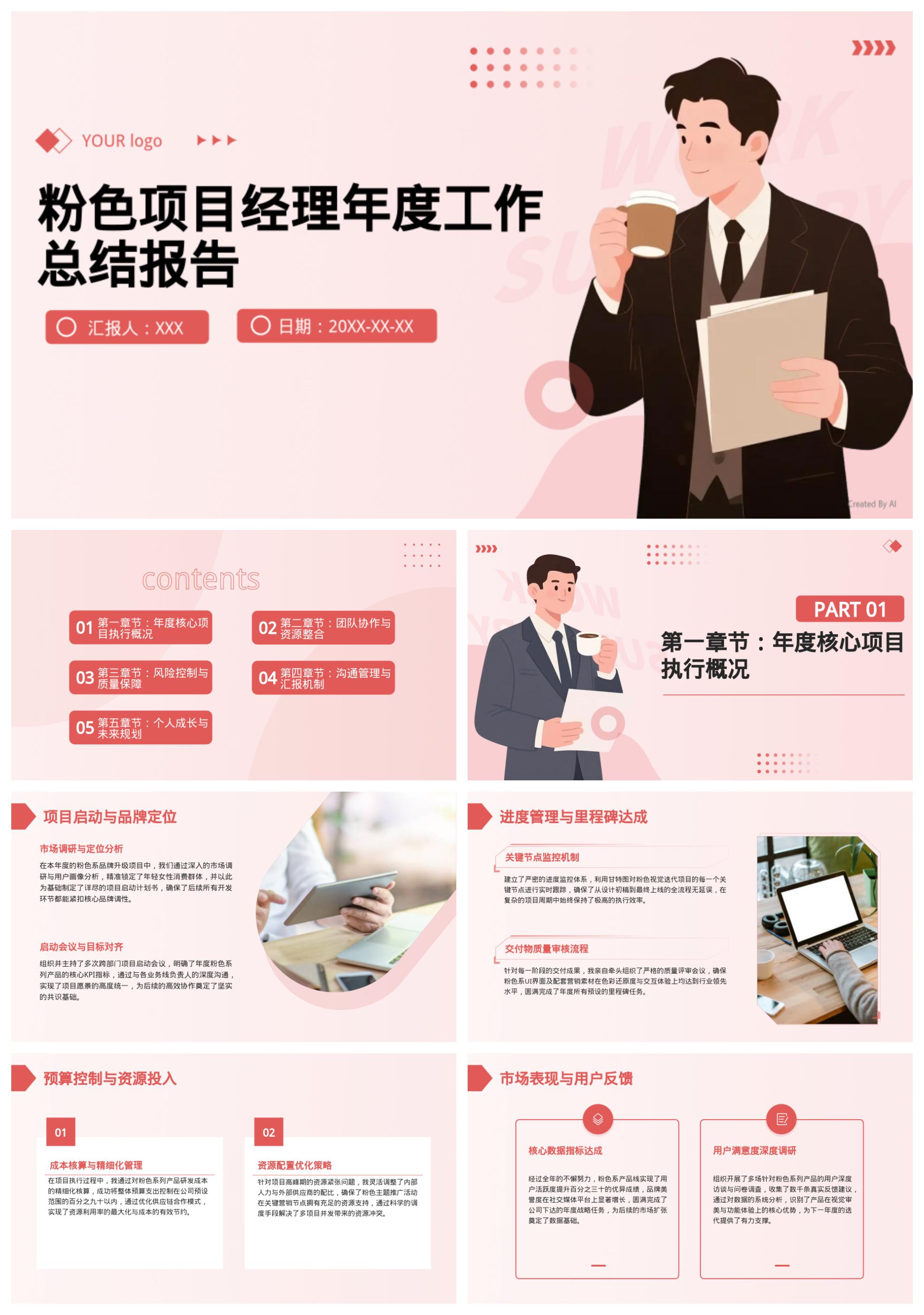 粉色项目经理年终总结模版
